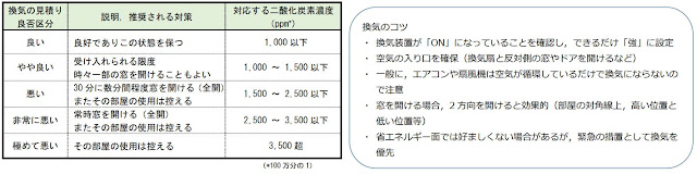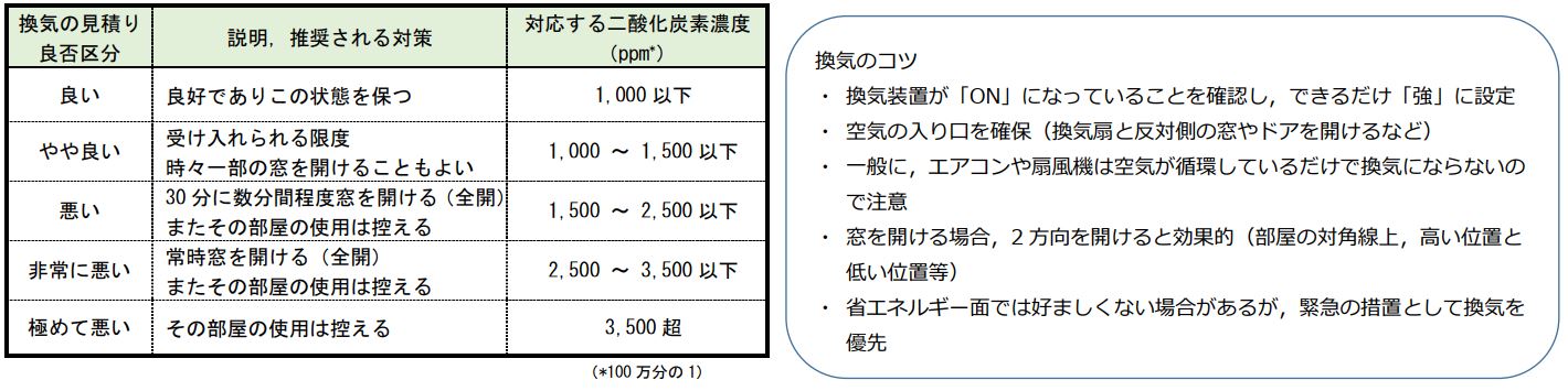 室内の二酸化炭素濃度が1,000ppm以下であれば、必要換気量(一人あたり毎時30立方メートル)を確保できるとみなすことができ、「換気が悪い密閉空間」には該当しないと言えるでしょう。